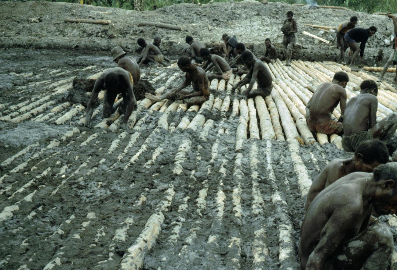 Asmat, paal, fundering, fundament, bouw, vliegveld